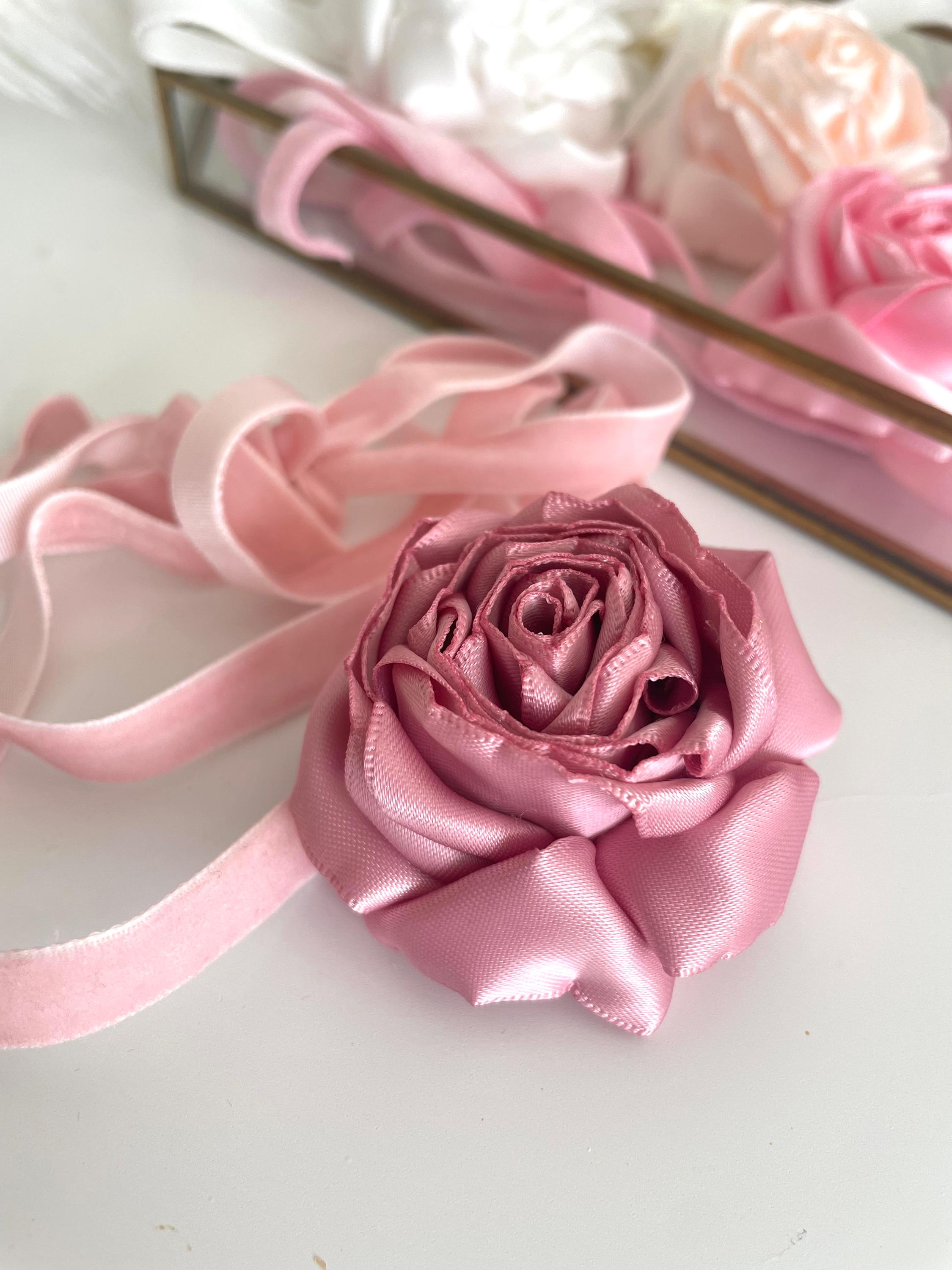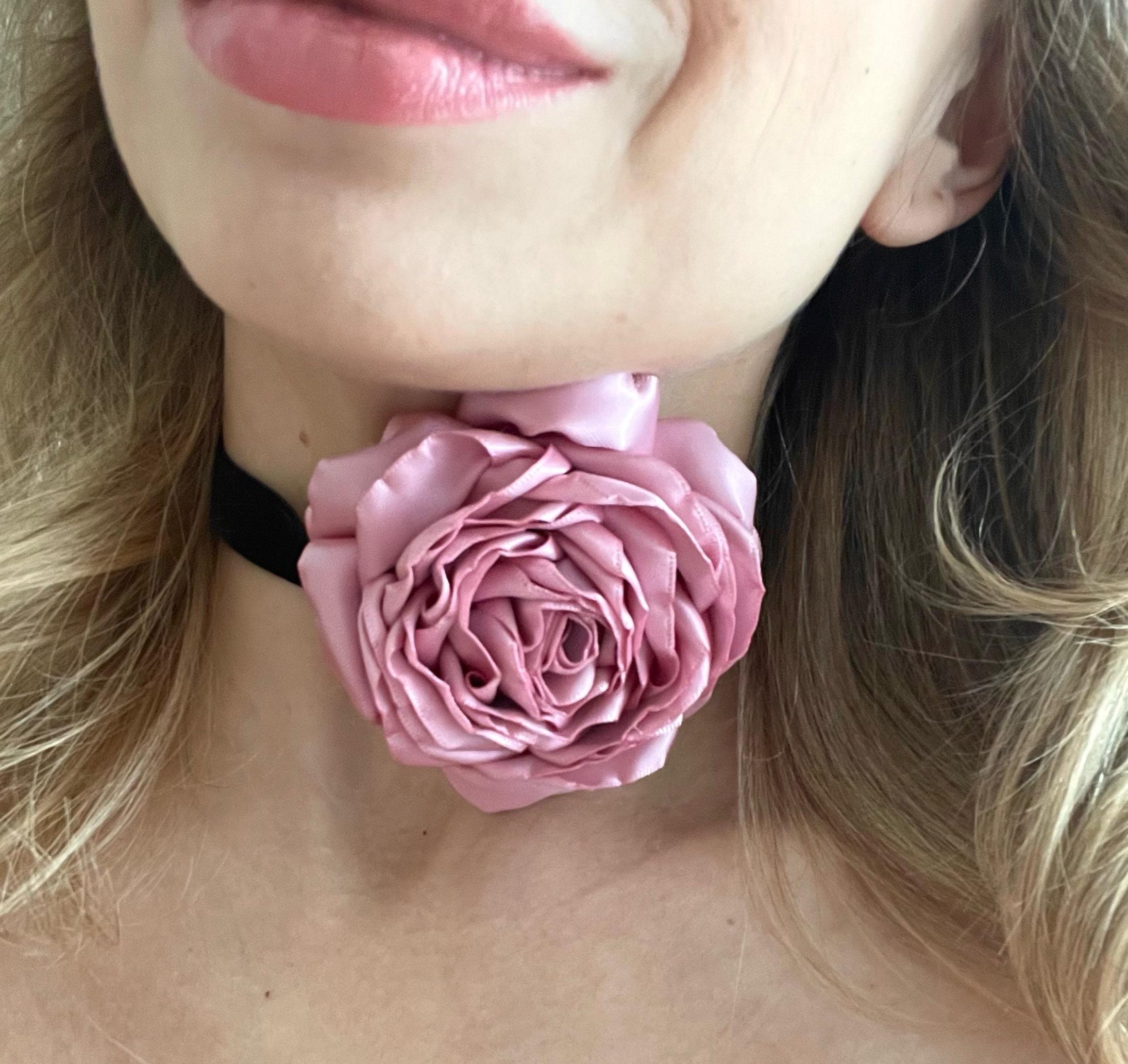 Dusty Pink Satin Rose Choker Necklace – Handmade Floral Velvet Ribbon Jewelry