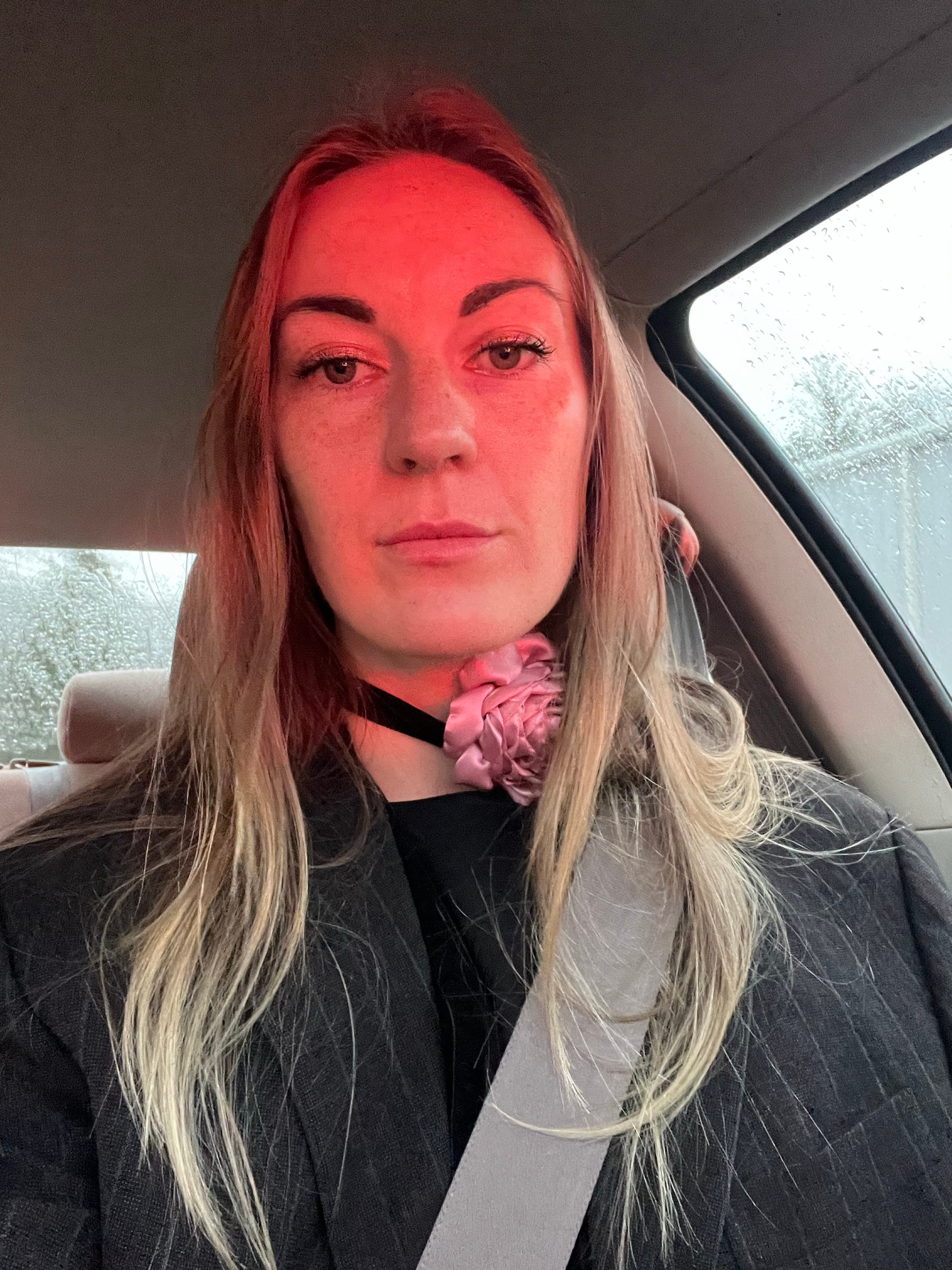 This dusty pink choker isn’t just jewelry — it’s a mood.