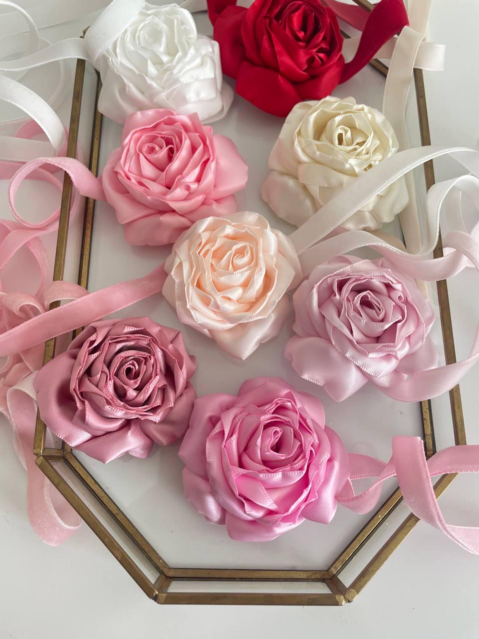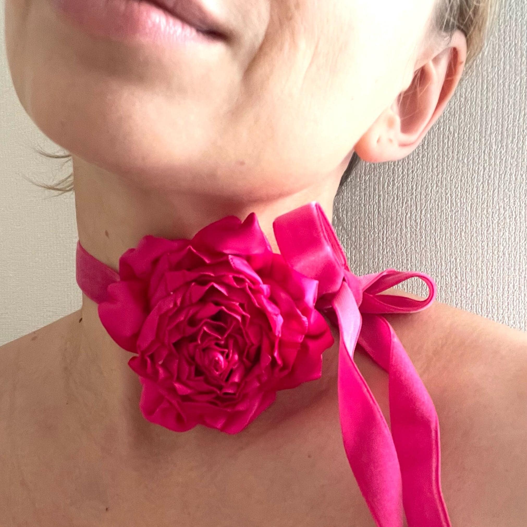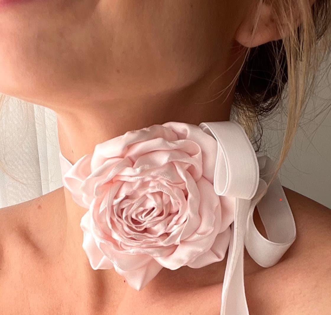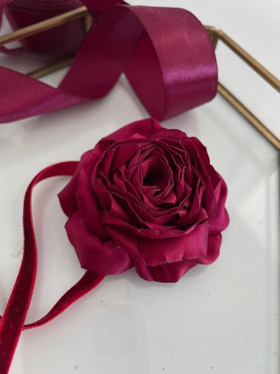 Handmade satin silk rose choker necklace – romantic floral accessory with adjustable velvet ribbon | Custom colors | Elegant gift for her 💐