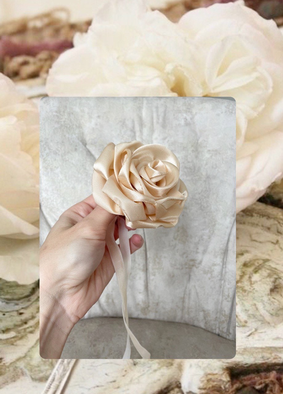 Handmade satin rose (champagne color) - Custom color available to match your wedding palette