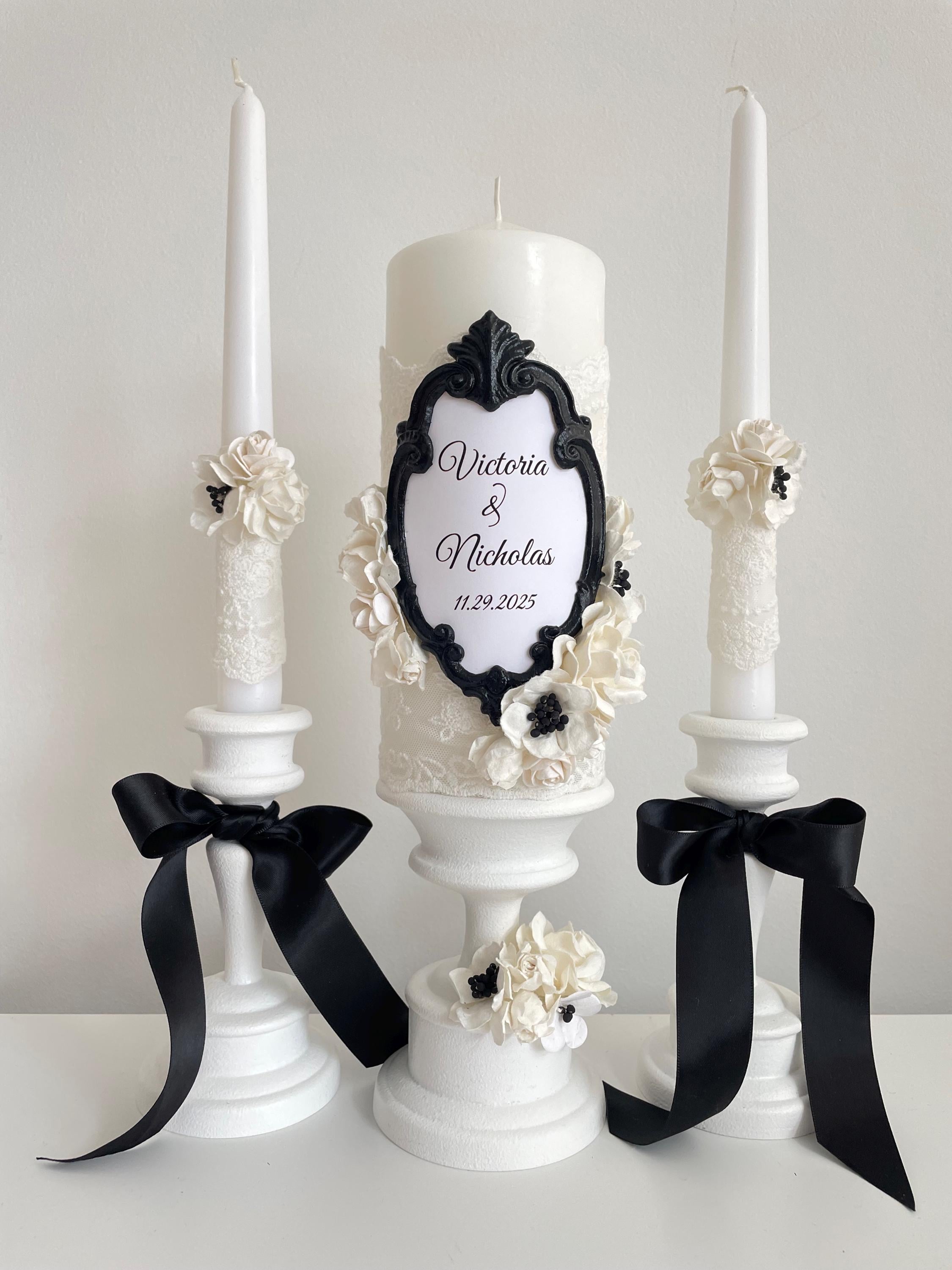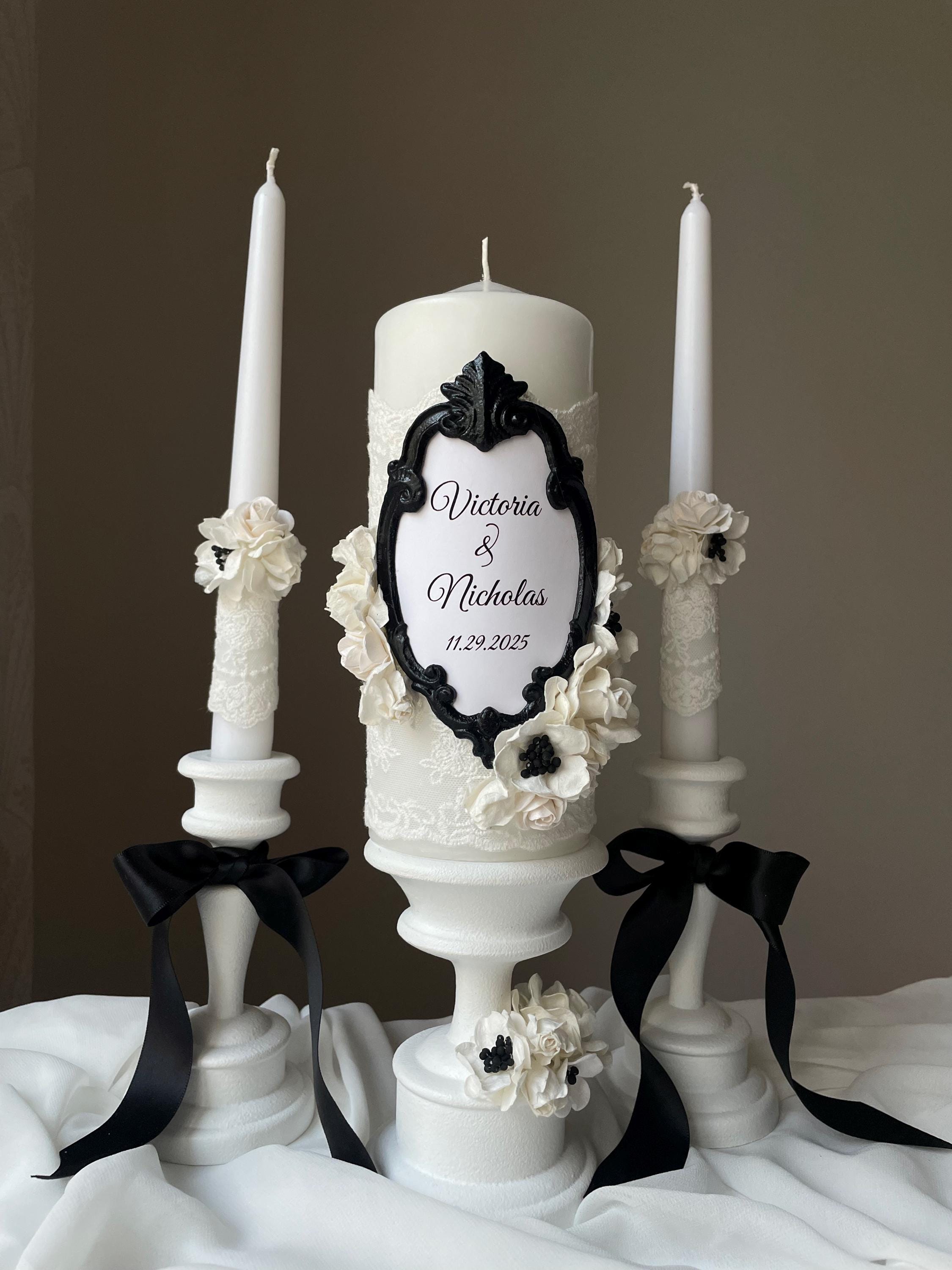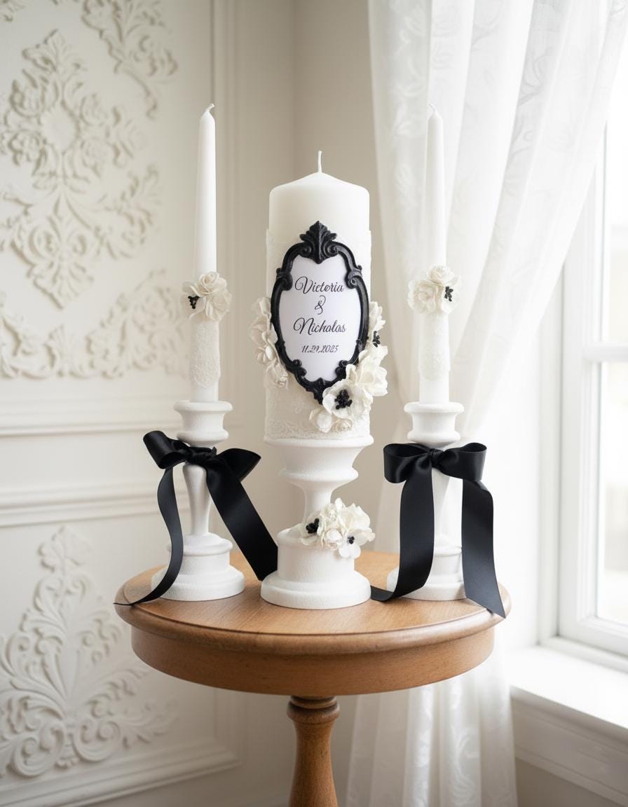 🕯️ Black & White Unity Candle Set – Modern Wedding Candles